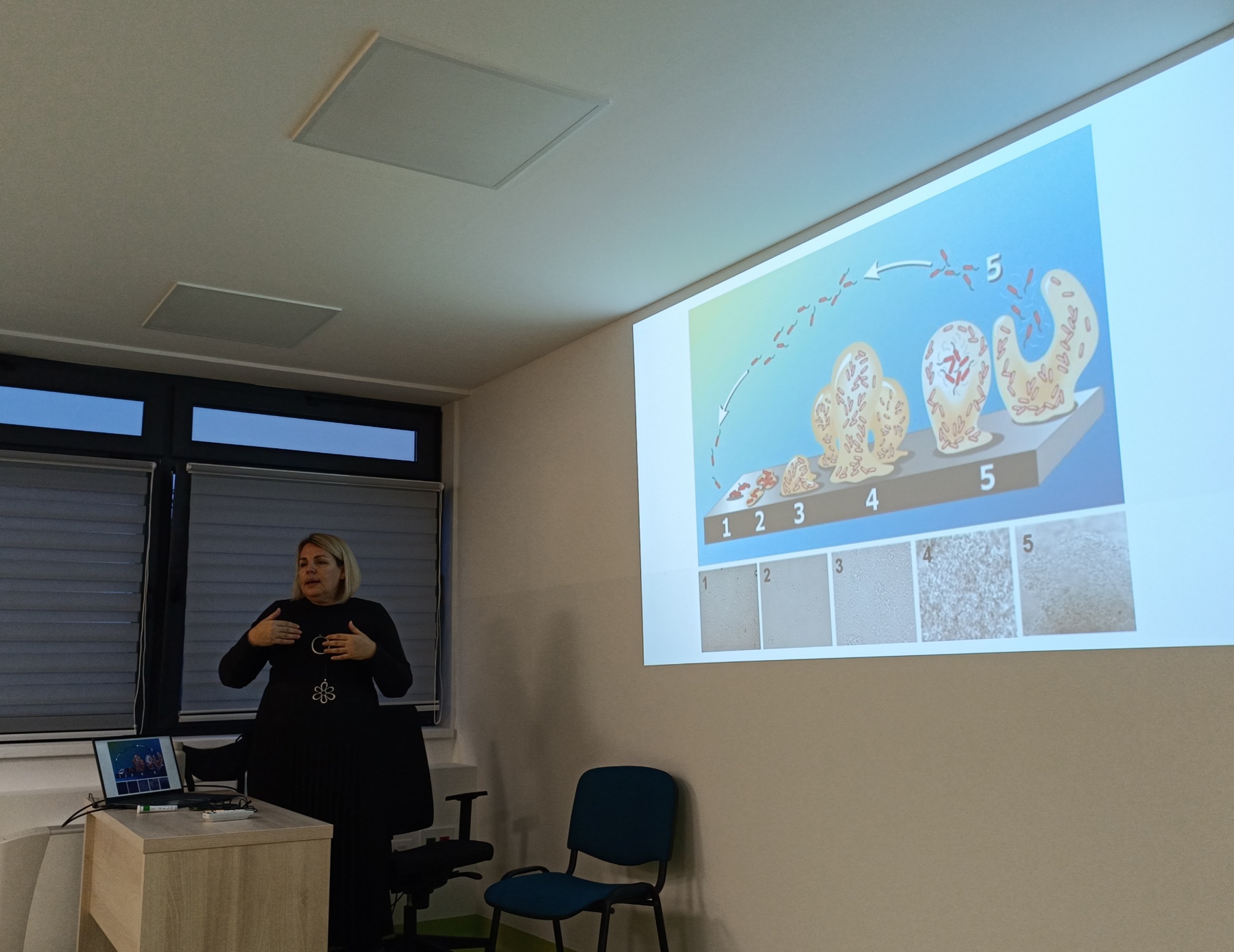 Predavanja su bila fokusirana na temu biofilmovi u vodoopskrbnom sistemu, uz poseban naglasak na problematiku biofilmova u rekreacionim vodama, prepoznatu kao jedan od najznačajnijih sistemskih izazova u kontekstu procjene rizika vezanih za rekreacione vode.