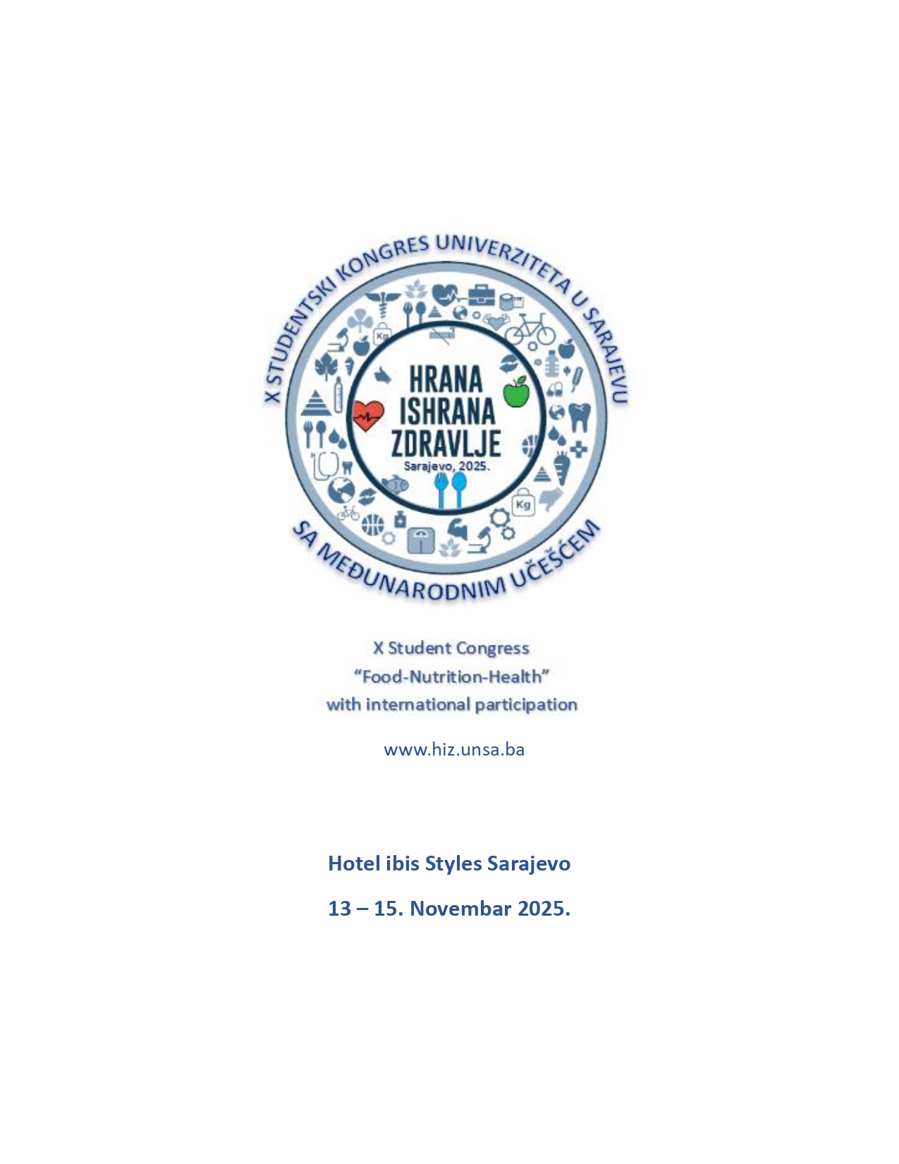 Podsjećamo studente Univerziteta u Sarajevu - Fakulteta zdravstvenih studija da će se X studentski kongres “Hrana-Ishrana-Zdravlje” održati u periodu od 13. do 15. novembra 2025.godine u Hotelu Ibis Styles Sarajevo. Studentski kongres „Hrana-Ishrana-Zdravlje“ (HIZ) je projekat započet 2016. godine [...]
